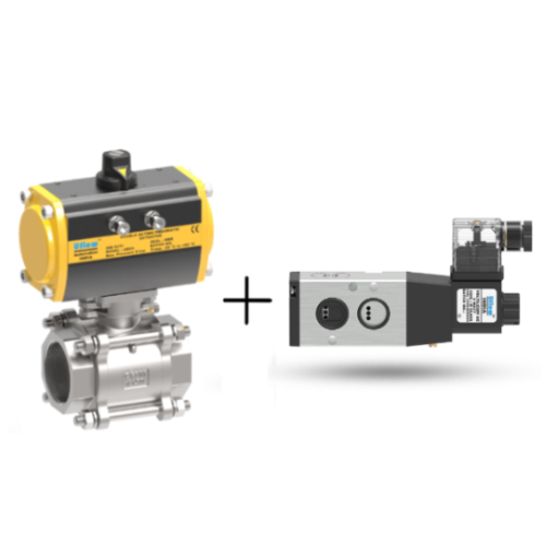 Uflow 1/2 Inch / 15mm SS304 Pneumatic Ball Valve with Double Acting Actuator and Solenoid Valve 24v DC