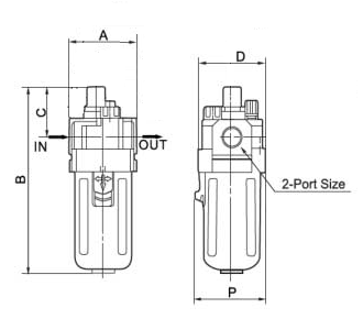 | Model | Port Size | Bowl Guard | Fluid | Temperature | Oil Use | Working Pressure Range | Max. Flow Rate Nl/Min |
