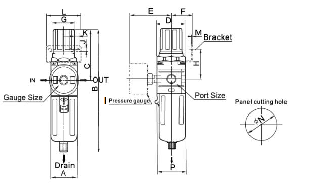 | W-02G | 1/4" BSP | 1/8" | Air | 5 to 60deg C | 40 µm | 0.5 to 8.5 Bar | 550 |