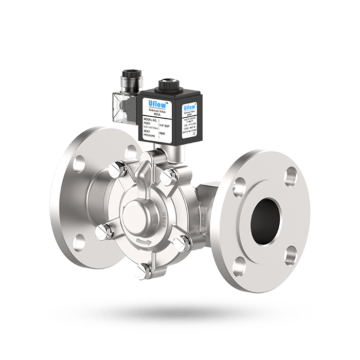Uflow 1 Inch 2/2 Way Normally Close Pilot Operated Diaphragm Solenoid Valve SS304 with Epoxy Moulded LED Coil - Flanged Ends