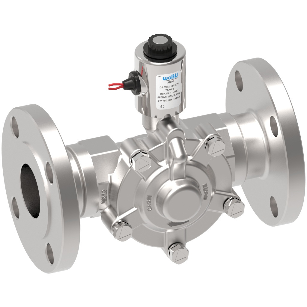 Uflow 1.1/2 Inch 2/2 Way Normally Close Pilot Operated Diaphragm Solenoid Valve SS304 with Metallic Round LED Coil - Flanged Ends