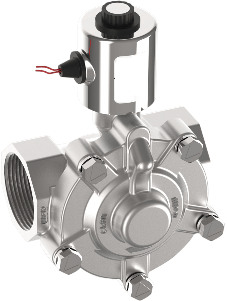 Uflow 1.1/4 Inch 2/2 Way Normally Close Pilot Operated Diaphragm Solenoid Valve SS304 with Metallic Round Coil - Screwed Ends