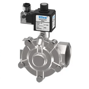 Uflow 1 Inch 2/2 Way Normally Close Pilot Operated Diaphragm Solenoid Valve SS304 with Metallic Round Coil - Screwed Ends