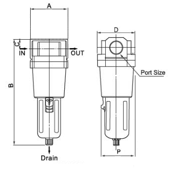 | F-10 | 1" BSP | Metal | Air | 5 to 60deg C | 40 µm | 0.5 to 8.5 Bar | 7000 |