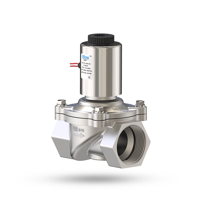 Uflow 1 Inch 2/2 Way Semi-Lift Diaphragm Operated Solenoid Valve for LPG SS304 with Power Saver Coil - Screwed Ends