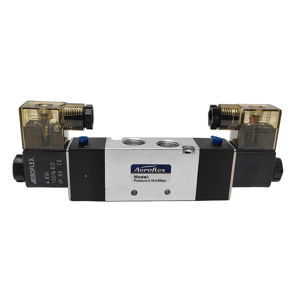 Aeroflex 1/4 Inch 5/2 Way 24V AC Double Solenoid Valve with Spring Return - DV4-08 Pneumatic Solenoid Valve 1/4" x 5/2 in 24V AC